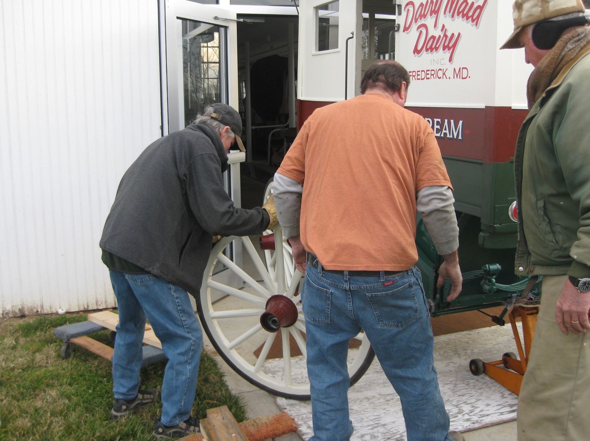 With a matching grant from Maryland Heritage Areas Authority, the MOOseum funded the restoration of the wagon. Heritage Montgomery also granted the MOOseun funds for a model horse so visitors would better understand how the wagon moved. Board member Kevin Martin, lead on this endeavor, began by hiring Tony Cooper of Coop’s Garage for this job. Mr. Cooper was an expert on restoring antique cars and he was up for the challenge of restoring this antique wooden milk wagon. He began with